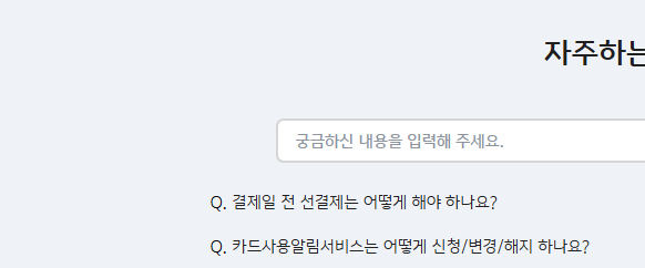 - 상담 전 카드번호, 주민등록번호 앞자리, 결제 계좌 정보 등을 준비하면 상담이 빨라집니다.